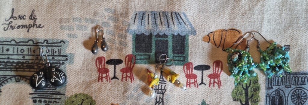 I have a vast collection of earrings. Some are vintage, others were gifts; some I made, and many I bought in my travels. They are some of my favorite accessories, along with purses. The earrings above were acquired at the Japanese Garden in Jardin botanique de Montréal (black drops with plum blossoms), the SoWa Art […]